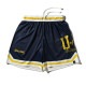 ●サイドに大きくプリントしたU of Mロゴがポイントのラインショーツ。